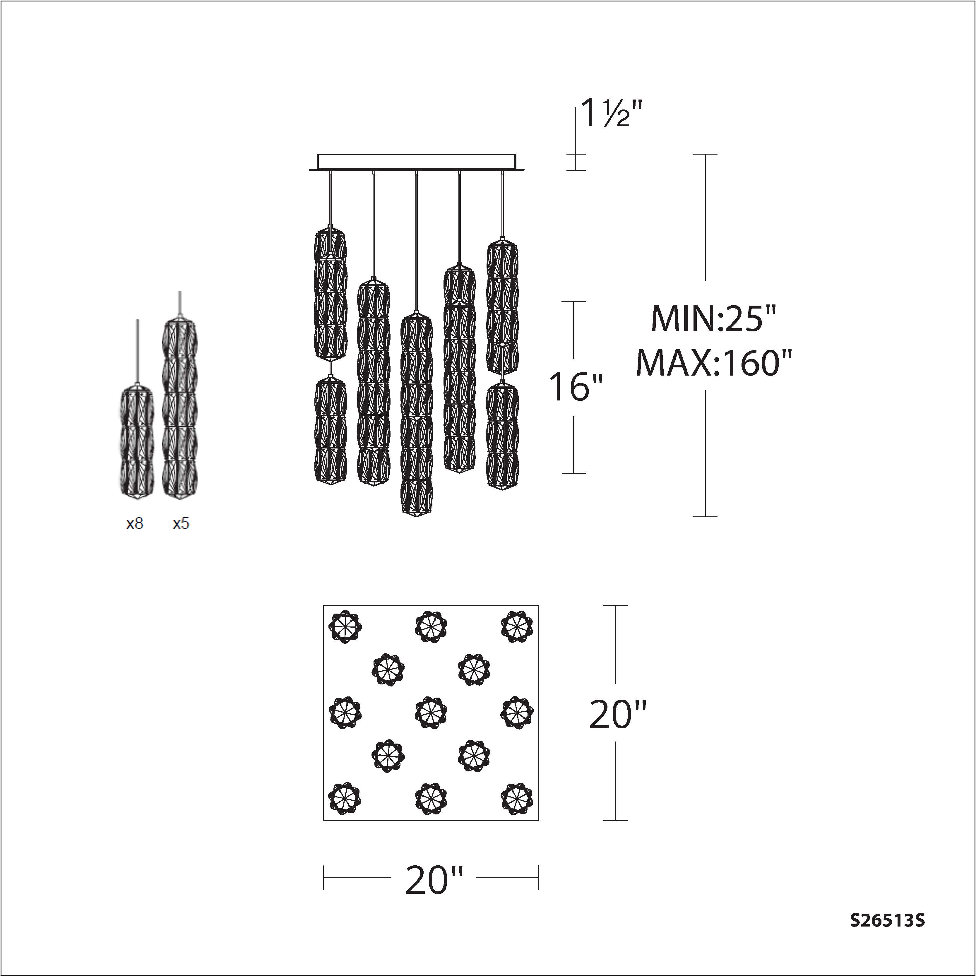 Cylinders of Radiance® Crystals with a resplendent backlit style presents the Verve Collection with an energizing presence that scatters bright starbursts of LED illumination. Thirteen Verve pendants are installed on one square canopy to make a modern statement in any space.