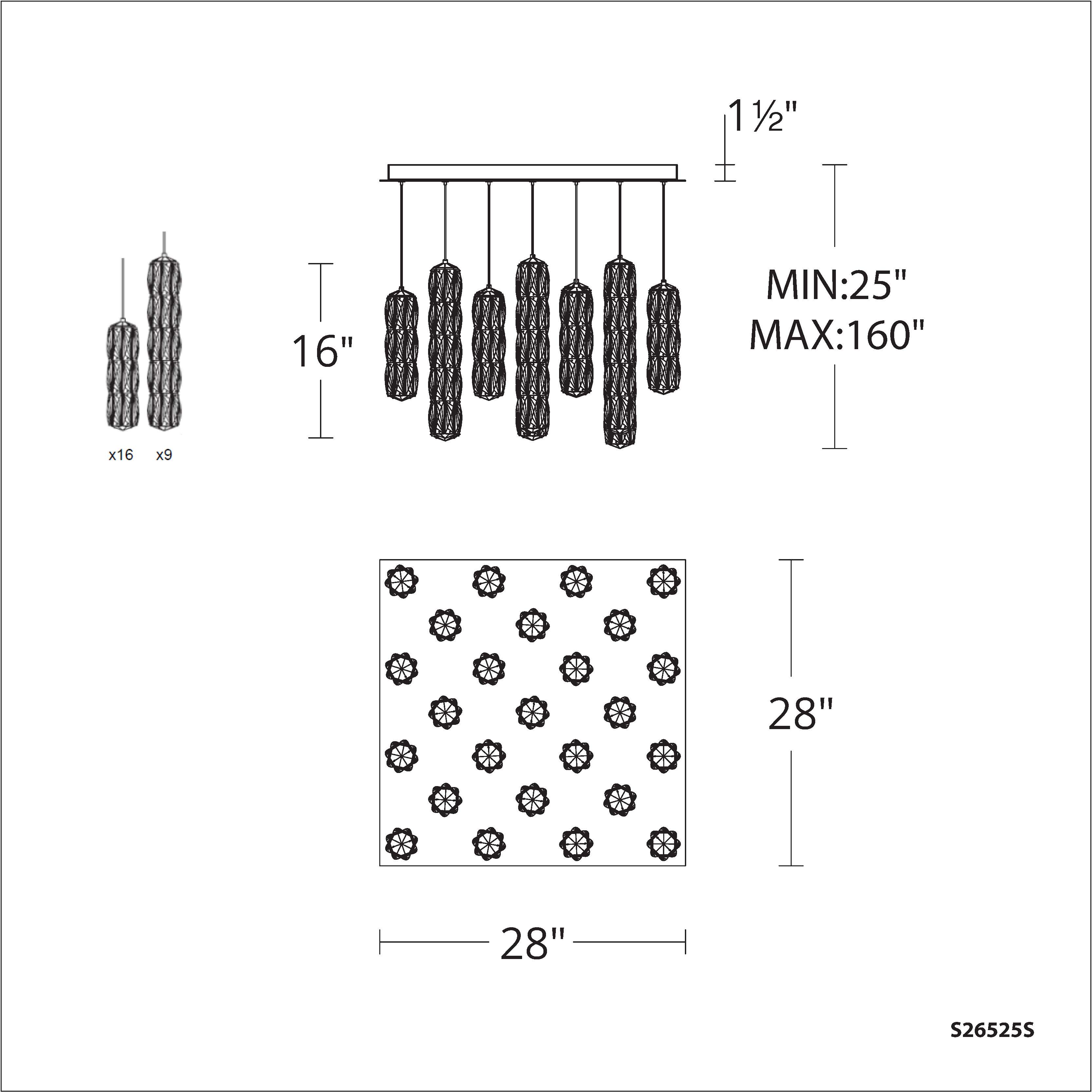 Cylinders of Radiance® Crystals with a resplendent backlit style presents the Verve Collection with an energizing presence that scatters bright starbursts of LED illumination. Twenty-five Verve pendants are installed on one square canopy to make a modern statement in any space.